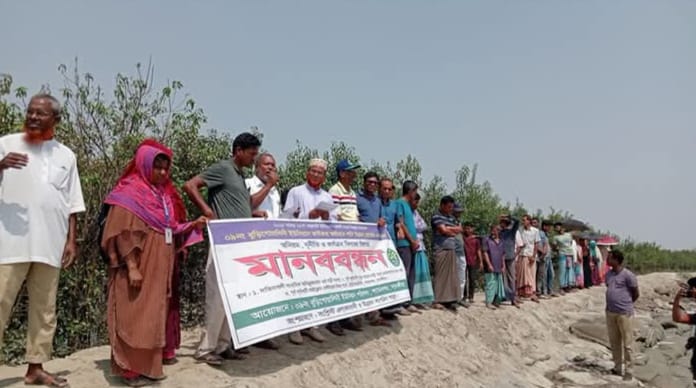 রিপোর্ট: ভয়েস অফ সুন্দরবন সাতক্ষীরার শ্যামনগরে পানি উন্নয়ন বোর্ডের বেড়িবাঁধ নির্মাণে অনিয়ম ও দুর্নীতির অভিযোগে মানববন্ধন অনুষ্ঠিত হয়েছে। বুধবার (০৫ মার্চ) খোলপেটুয়া নদীর বেড়িবাঁধে বুড়িগোয়ালিনী ইউনিয়ন পরিষদ ও স্থানীয়