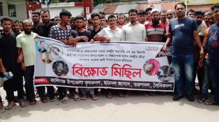এসএম শাহাদাত কালিগঞ্জ প্রতিনিধিঃ জাতীয়তাবাদী স্বেচ্ছাসেবক দলের কেন্দ্রীয় সভাপতি এস এম জিলানী সহ অর্ধশত নেতাকর্মীর উপর হামলা ও কেন্দ্রীয় স্বেচ্ছাসেবক দলের ক্রীড়া সম্পাদক শওকত আলী দিদা’র হত্যার