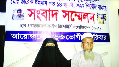 কোটা সংস্কার আন্দোলনের নেতা মো. তারেক রহমানকে সুস্থভাবে ফিরে পাওয়ার আরজি জানিয়েছেন তার মা সাহানা বেগম। গতকাল সোমবার দুপুর ১২টার দিকে রাজধানীর সেগুনবাগিচায় বাংলাদেশ ক্রাইম রিপোর্টার্স অ্যাসোসিয়েশন (ক্র্যাব) মিলনায়তনে এক