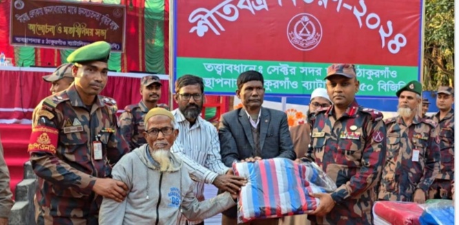মোঃ মজিবর রহমান শেখ ঠাকুরগাঁও জেলা প্রতিনিধি,, ঠাকুরগাঁওয়ে সীমান্ত এলাকায় অপরাধ বন্ধে জনসচেতনতামূলক আলোচনা সভা , ৫’শ শীতার্ত পরিবারের মাঝে শীতবস্ত্র বিতরণ করেছে ঠাকুরগাঁও ৫০ বিজিবি ব্যাটালিয়ন ।