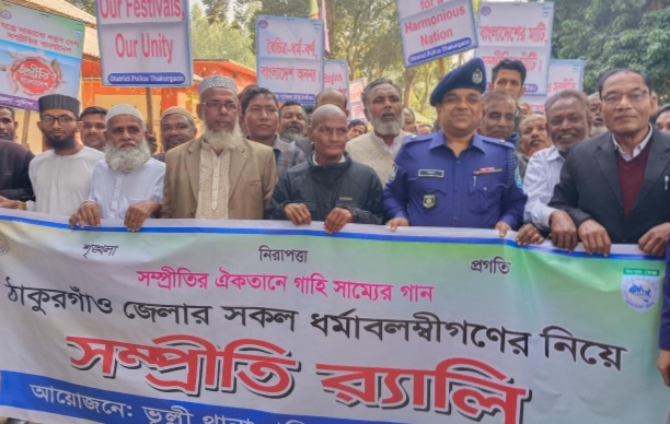 মোঃ মজিবর রহমান শেখ ঠাকুরগাঁও জেলা প্রতিনিধি,, সম্প্রীতির ঐক্যতানে গাহি সাম্যের গান এই স্লোগানে সকল ধর্মালম্বীগণের সাথে ঠাকুরগাঁও জেলার সদর উপজেলার ভূল্লীতে সম্প্রীতি র্যালী ও সমাবেশ অনু্ষ্ঠিত হয়েছে।