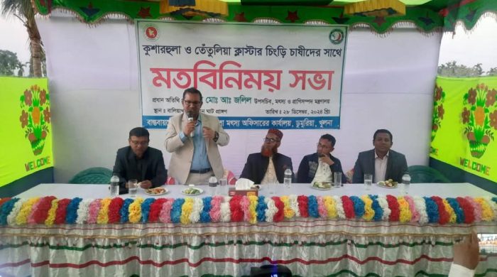 শেখ মাহতাব হোসেন। ডুমুরিয়ায় কুশারহুলা ও তেঁতুলিয়া ক্লাস্টার চিংড়ি চাষীদের সাথে মতবিনিময় সভায় প্রধান অতিথি হিসেবে উপস্থিত ছিলেন মৎস্য ও প্রাণিসম্পদ মন্ত্রণালয়ের সম্মানিত উপসচিব মোঃ আঃ জলিল মহোদয়। বিশেষ
