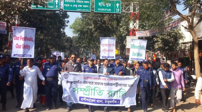 আব্দুল জব্বার ঠাকুরগাঁও: ঠাকুরগাঁওয়ের রাণীশংকৈলে ঠাকুরগাঁও জেলার সকল ধর্মাবলম্বীগণের উপস্থিতিতে এক সম্প্রীতি সমাবেশ অনুষ্ঠিত হয়েছে। শনিবার (২৮ ডিসেম্বর) রাণীশংকৈল থানা এর আয়োজনে “সম্প্রীতির ঐকাতনে গাহি সাম্যের read more