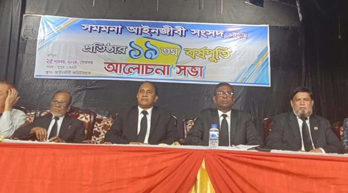 স ম জিয়াউর রহমান, চট্টগ্রাম থেকে : চট্টগ্রাম নগরীর কোর্ট হিলে সমমনা আইনজীবী সংসদের ১৯তম প্রতিষ্ঠা বার্ষিকী উপলক্ষে আলোচনা সভা অনুষ্ঠিত হয়েছে। গতকাল (২৫ নভেম্বর) সোমবার চট্টগ্রাম