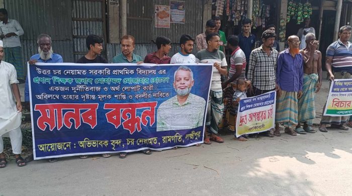 মোঃ নুর হোসেন,লক্ষ্মীপুর প্রতিনিধি: লক্ষ্মীপুর রামগতি উপজেলার ঐতিহ্যবাহী উত্তর চর নেয়ামত সরকারি প্রাথমিক বিদ্যালয়ের সুনাম পুনরুদ্ধারে অনিয়ম ও দুর্নীতির সাথে সম্পৃক্ত প্রধান শিক্ষক মোহাম্মদ মোজাহার হোসেনের অপসারণের দাবিতে বিদ্যালয়ের