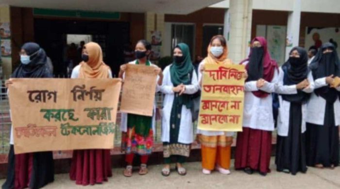 রফিকুল ইসলাম রফিক, কুড়িগ্রাম জেলা প্রতিনিধি কুড়িগ্রামে জেলা প্রশাসক কার্যালয় চত্বরে বৈষম্য বিরোধী মেডিকেল টেকনোলজি ও ফার্মেসি ছাত্র সংগ্রাম পরিষদের ব্যানারে মানববন্ধন ৬ দফা দাবি আদায়ের লক্ষ্যে ২৪