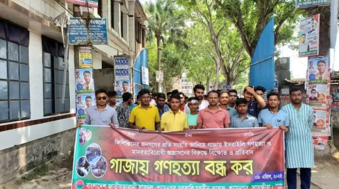 রিপোর্ট: ভয়েস অফ সুন্দরবন গাজায় গণহত্যার প্রতিবাদে শ্যামনগর সরকারি মহসীন কলেজে ছাত্রদলের বিক্ষোভ ও প্রতিবাদ সমাবেশফিলিস্তিনের নিরীহ জনগণের ওপর ইসরাইলি বাহিনীর গণহত্যা ও মানবতাবিরোধী আগ্রাসনের প্রতিবাদে শ্যামনগর সরকারি মহসীন