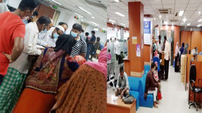 সিদ্ধিরগঞ্জ প্রতিনিধি : সিদ্ধিরগঞ্জ থানাধীন হাজী ইব্রাহীম খলিল সুপার মার্কেটে অবস্থিত শিমারাইল ডাচ্ বাংলা ব্যাংকের শাখায় অনেক গ্রাহক স্বাস্থ্যবিধি অমান্য করে লেনদেন করতে দেখা যায়। ২২ ই আগষ্ট রবিবার দুপুরে